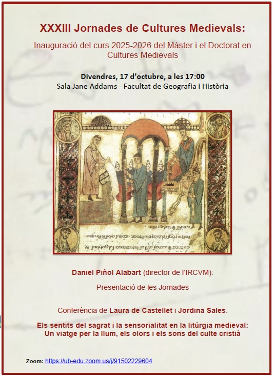 Les jornades seran presentades pel Dr. Daniel Piñol, director de l’IRCVM, i serviran per inaugurar el curs 2025-2026 del Màster i el Doctorat en Cultures Medievals.